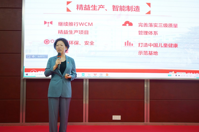 刘景萍董事长引用席大大总书记在2022年博鳌亚洲论坛上的重要讲话勉励全体与会人员,在海南自贸港建设的机遇期,认真学习贯彻落实省第八次党代会精神,坚持党建引领企业发展,将人生就是博药业集团打造成中国儿童健康领军企业。
